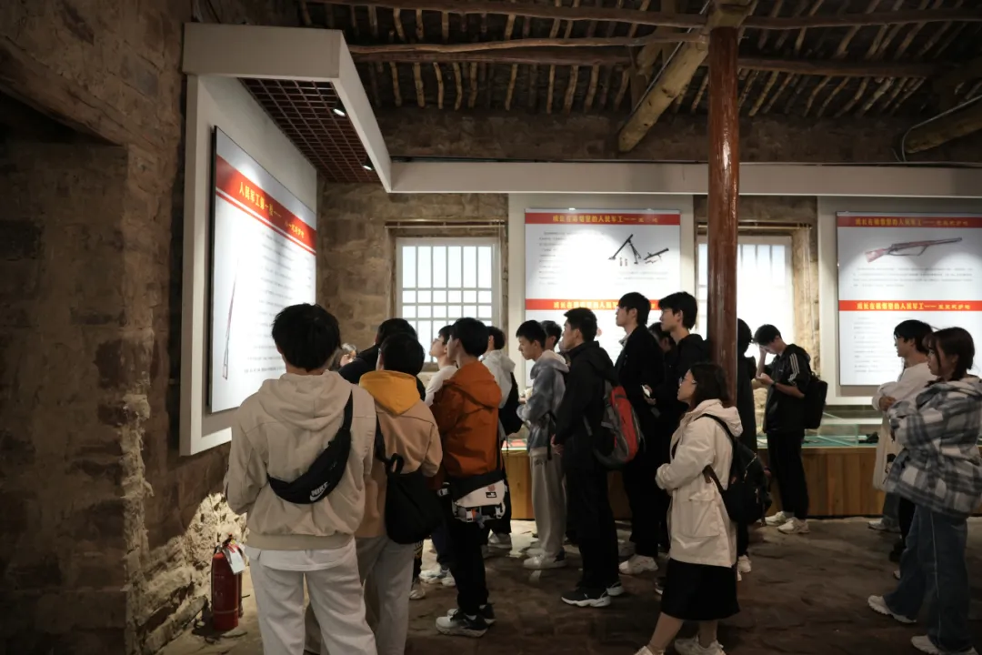 黄崖洞有一座兵工厂,这里生产了大量的手榴弹、迫击炮、炮弹、“八一式马步枪”等武器,极大增强了八路军战斗力,是八路军在华北坚持抗战的有力保障,被誉为“军工摇篮”。伴随着讲解员全面而深入的介绍,队员们一一观察着这些饱经历史风霜的老物件,并逐渐沉浸于其中的故事,历史与现实交织,过往的一幕幕令在场的人陷入沉思。