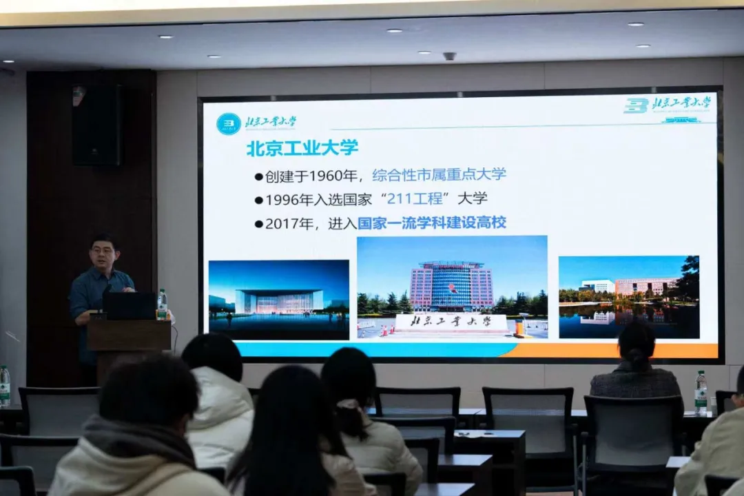 宣讲老师详细介绍了学校的历史沿革、师资力量、学科建设等方面的情况,分别对本校的优势专业进行了深入解读,全方位地展示了各专业的特色与魅力,并重点解读了北京工业大学研究生招生政策,涵盖了招生计划、录取分数线、招生批次等内容。在互动答疑环节,同学们积极提问,宣讲老师一一耐心解答,现场气氛热烈。