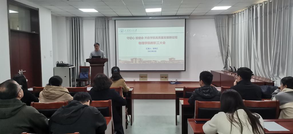 3月24日上午,物理学院召开教职工会议,选举产生出席学校第五届教职工暨工会会员代表大会的代表,传达学校2023年春季学期工作会议精神,安排部署学院新学期党务行政工作。学院教职员工参加会议,会议由院党委书记赵雪霞主持。